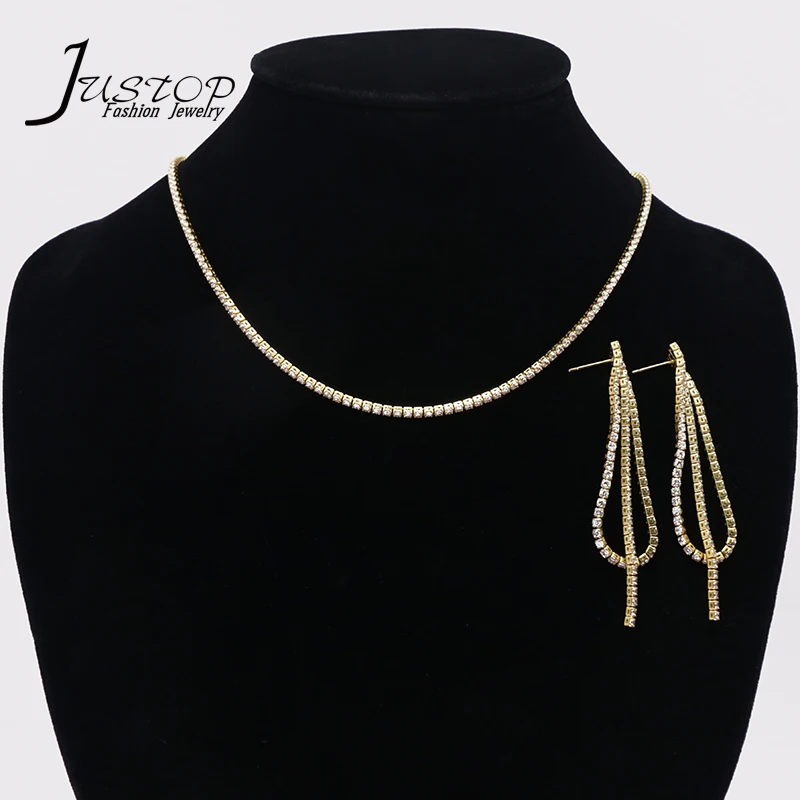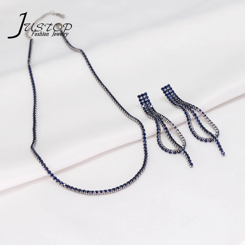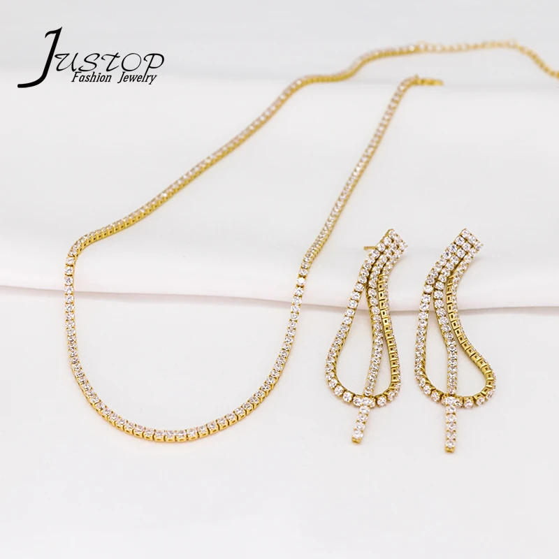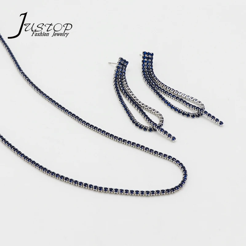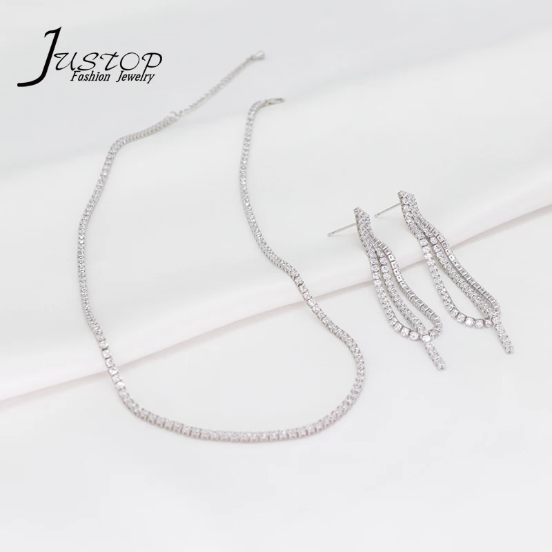 Popular Trendy Tassel Copper Jewelry Women's Zircon 18k Gold Silver Chain Necklace Earring Jewelry Set